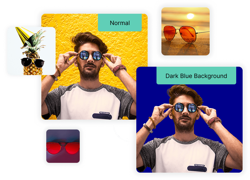 Yes! In addition to the dark blue background option, we offer a range of ready-made color backgrounds to match your needs. Start with our Background Remover, then choose from popular options like red background, black background, blue background, grey background, orange background, yellow background, green background, brown background, pink background, or purple background. Each background applies instantly once the original is removed.