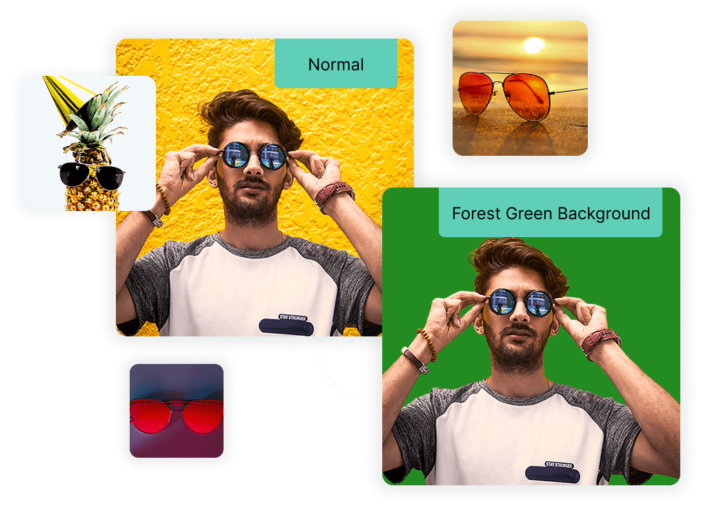 Sign up for our free API and automatically replace background, add forest green background to web images, or contextually remove just specific parts of the image using AI