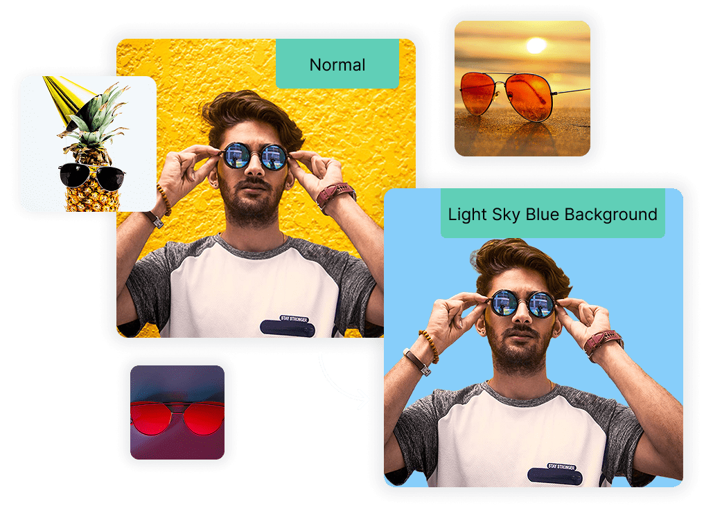 Yes! In addition to the light sky blue background option, we offer a range of ready-made color backgrounds to match your needs. Start with our Background Remover, then choose from popular options like red background, black background, blue background, grey background, orange background, yellow background, green background, brown background, pink background or purple background. Each background applies instantly once the original is removed.