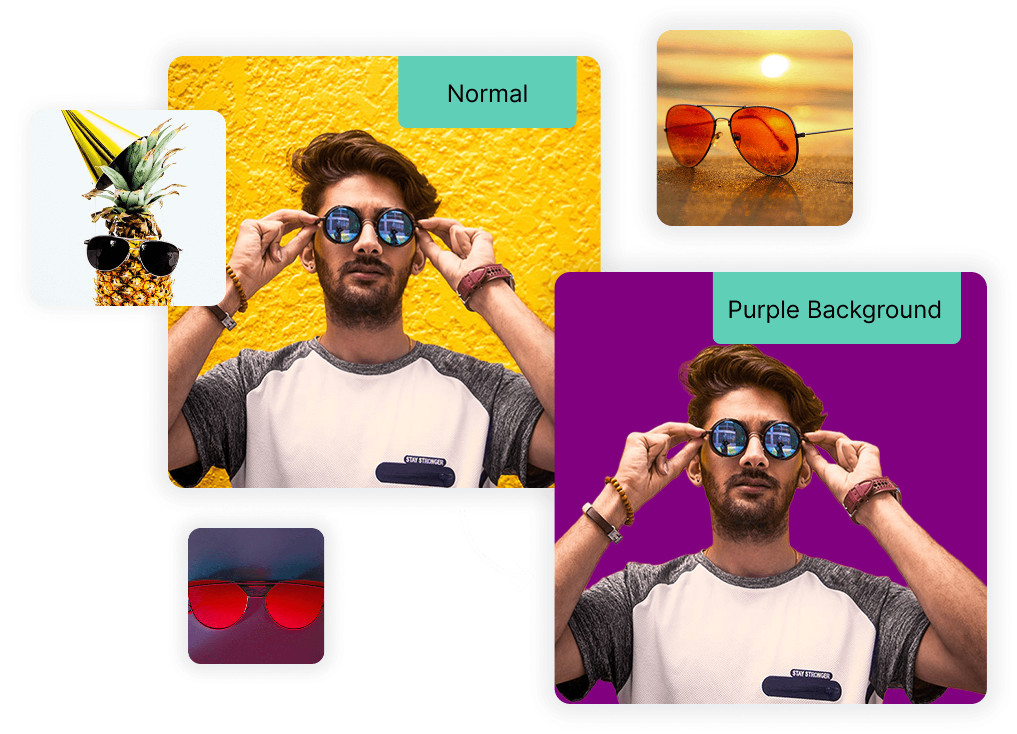 Instantly add purple background to pictures, transform your images, swap and customize backgrounds.