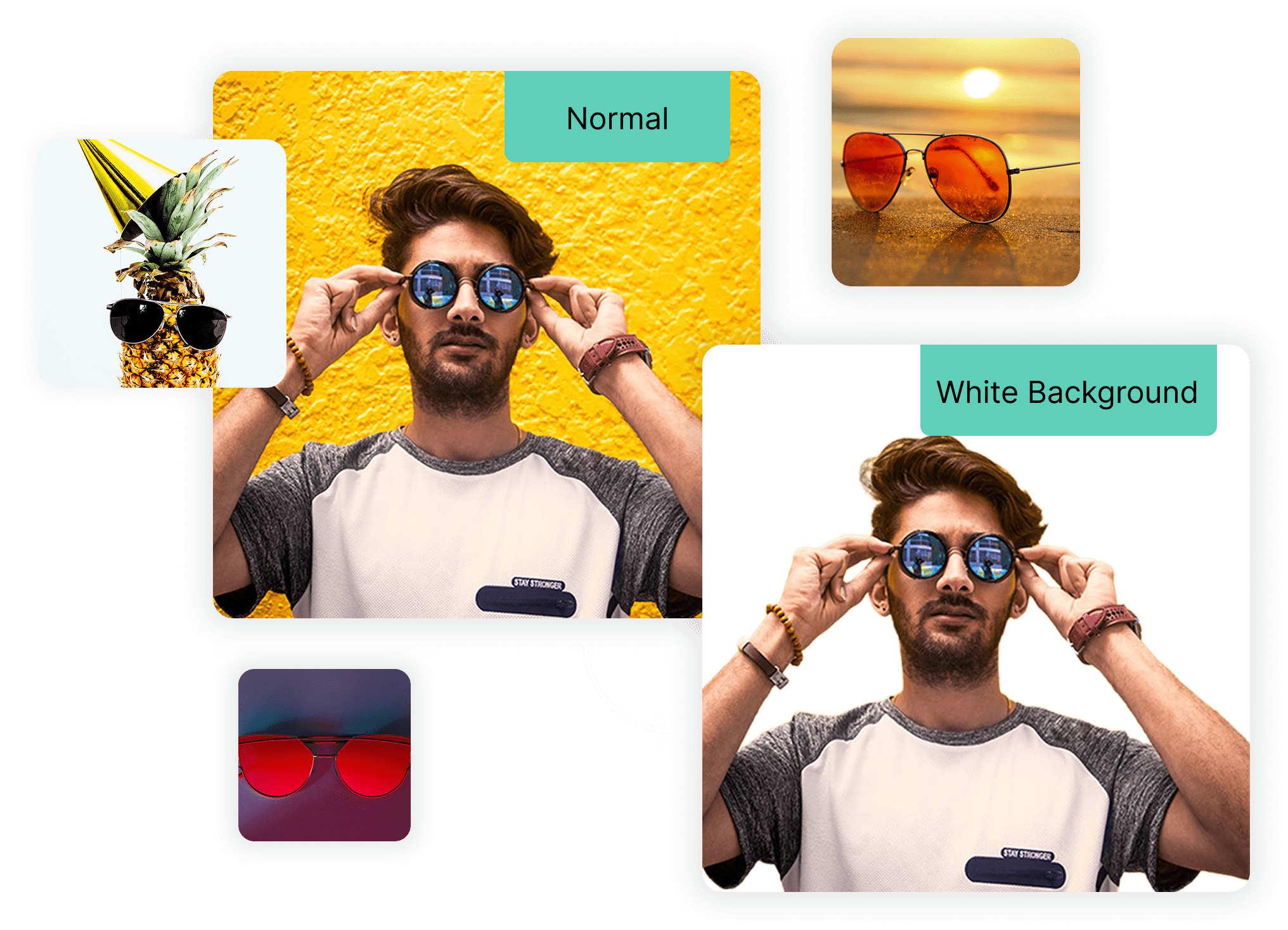 Instantly add white background to pictures, transform your images, swap and customize backgrounds.