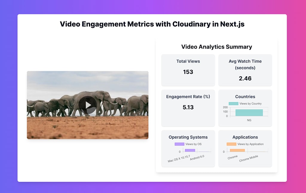 This blog post shows you how to add engagement metrics to your video dashboard using the Cloudinary video analytics library in your Next.js application. You can try to compute and render other metrics from the provided data.