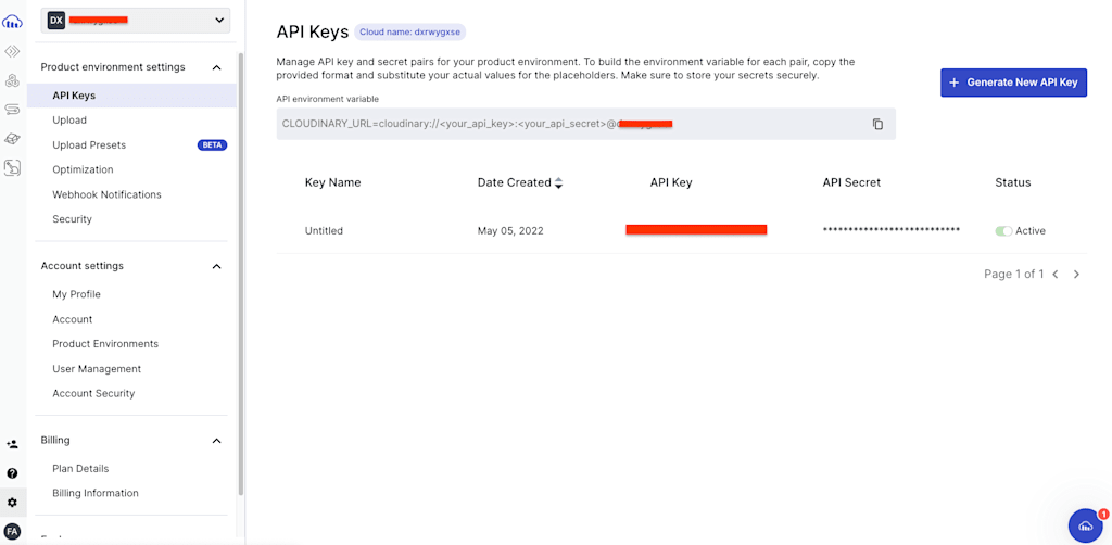 Once signed in, familiarize yourself with the Cloudinary dashboard. Note your Cloudinary URL, which is essential for uploading and retrieving media located in your API keys page: