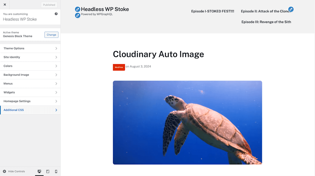 Now, let’s use CSS to style our video so it fits better on the page. In order to do this in your WP admin dashboard, navigate to Appearance > Customize. Then open the Additional CSS section. You should see this page: