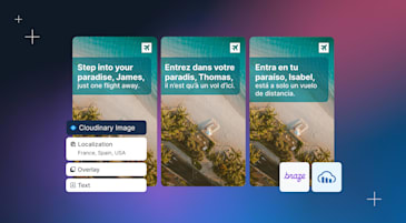 Cloudinary. Using the latest Cloudinary Contentful integration, the app pulls a master asset and applies the