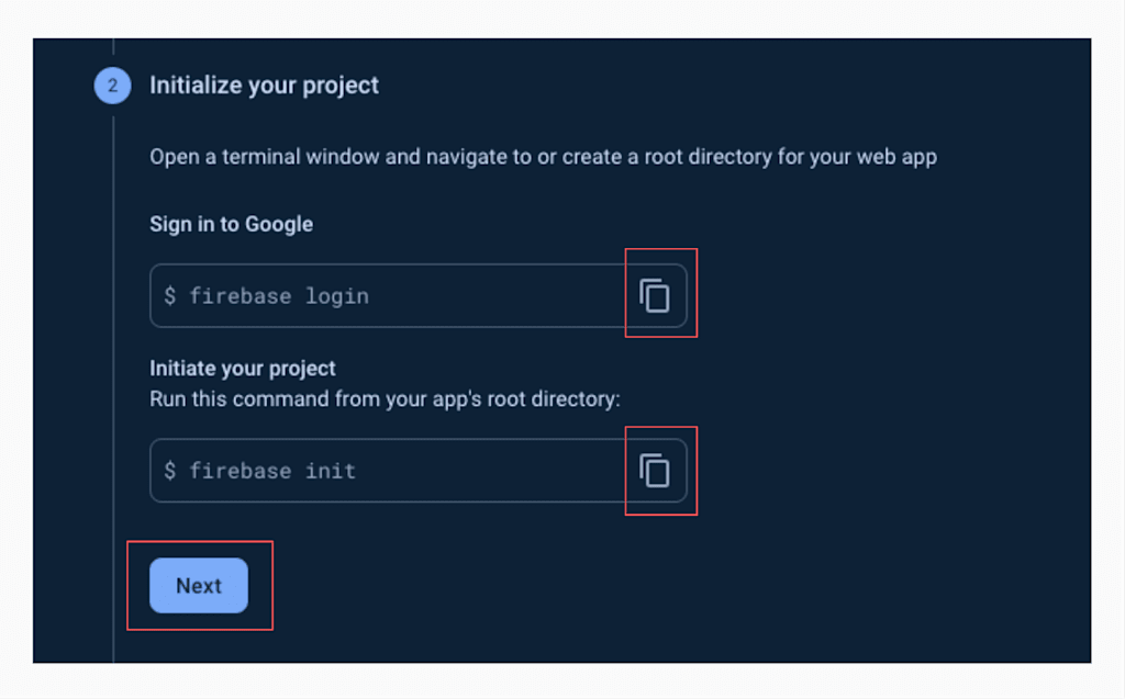 Initialize your Firebase project by logging into your Firebase account in your terminal. This is the same email you used to create your Firebase website.