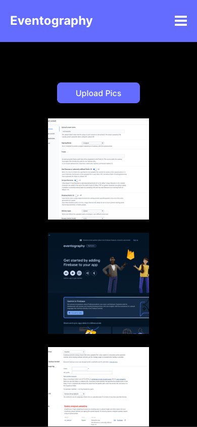 Eventography is a centralized platform for guests to easily upload their best shots to a secure server powered by Cloudinary. Our content moderation feature, powered by Amazon Rekognition, ensures that looking through your event’s memorable photos will be a safe and enjoyable experience.