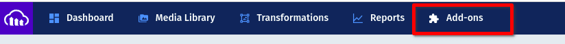 Our project requires the Neural style transfer add-on from Cloudinary. To use the add-on in code, we will need to register for it via the Cloudinary dashboard. We will log into our Cloudinary dashboard to sign up for the add-on. Choose the Add-ons tabs from the available options on the navigation bar.