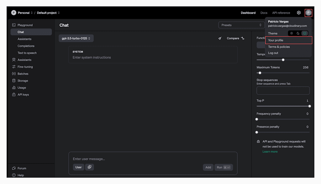 To begin, log in to your OpenAI Platform account or create a free account. You’ll be redirected to your OpenAI dashboard.