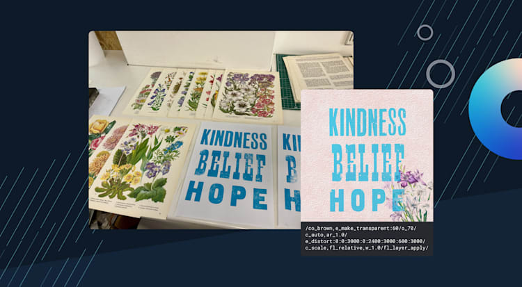 While learning the letterpress process, I thought about how we could achieve similar effects with Cloudinary. The obvious way would be to apply a text overlay to an image, as previously mentioned. If you’re familiar with Cloudinary, then you’ll know you can do this by adding transformation parameters to the delivery URL of the base image.