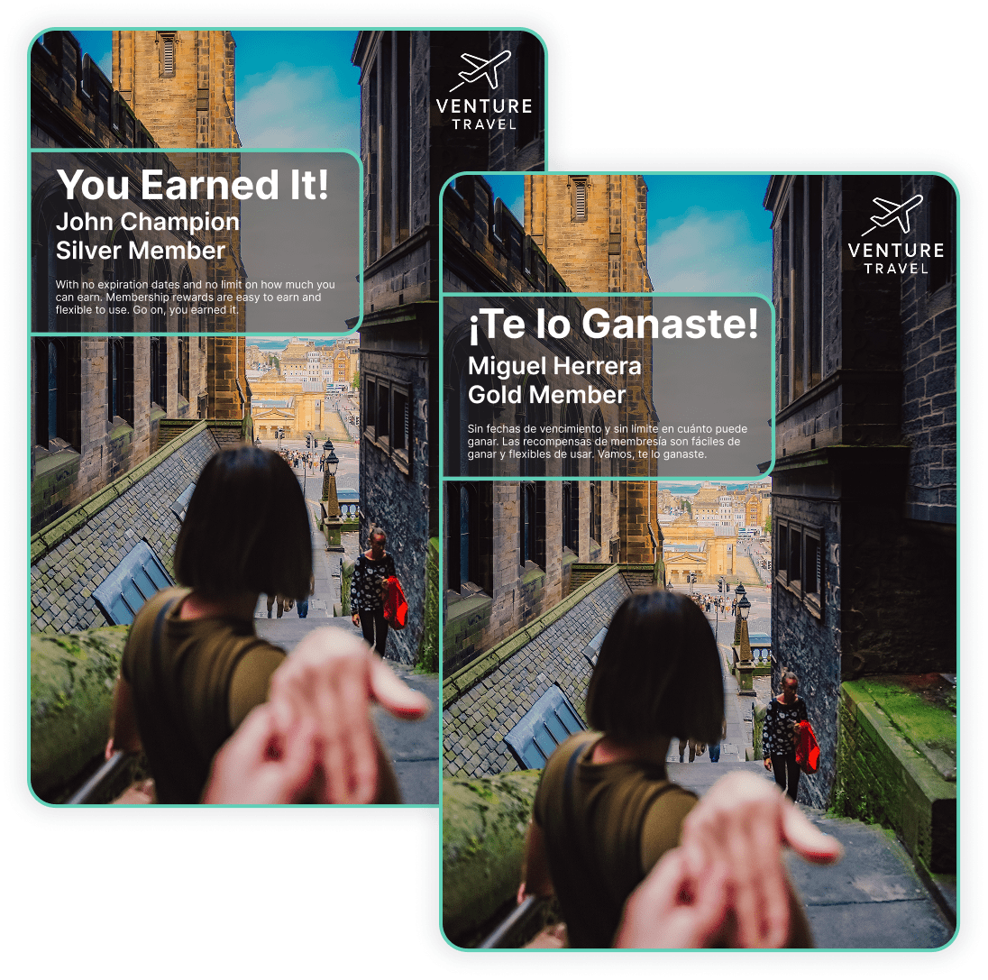 Combine Braze user attributes with Cloudinary transformation parameters to generate personalized images and videos. For example, use text overlays to add user-specific information such as names, locations, or reward data to campaign visuals.
