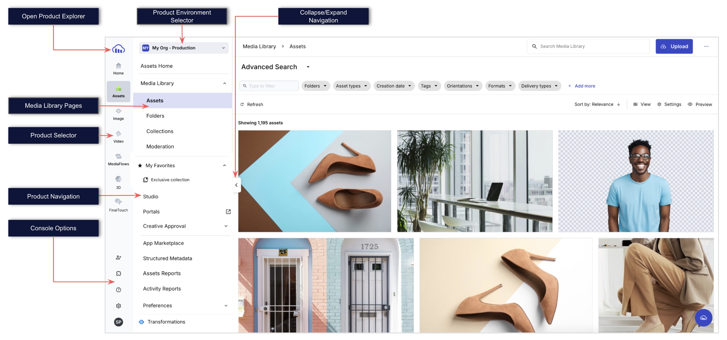 | Studio | Easily apply transformations and AI-driven actions to multiple images through an intuitive interface. You can create variations and, if you're an admin, save templates for future downloads. For more information, see Studio. Note: This feature is a premium offering for Assets Enterprise plans, and its availability depends on your account setup. |