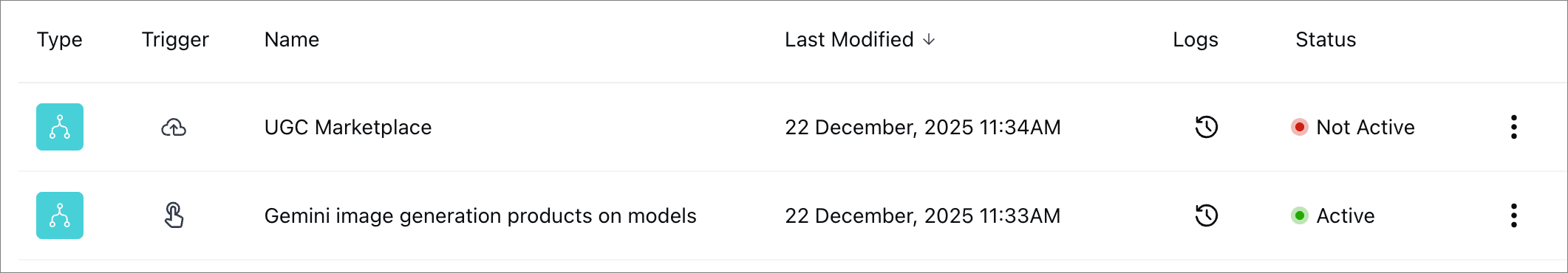 - From the Navigation Bar on the left, open the Logs sidebar. All executions will appear in the sidebar, including their execution time and status.
