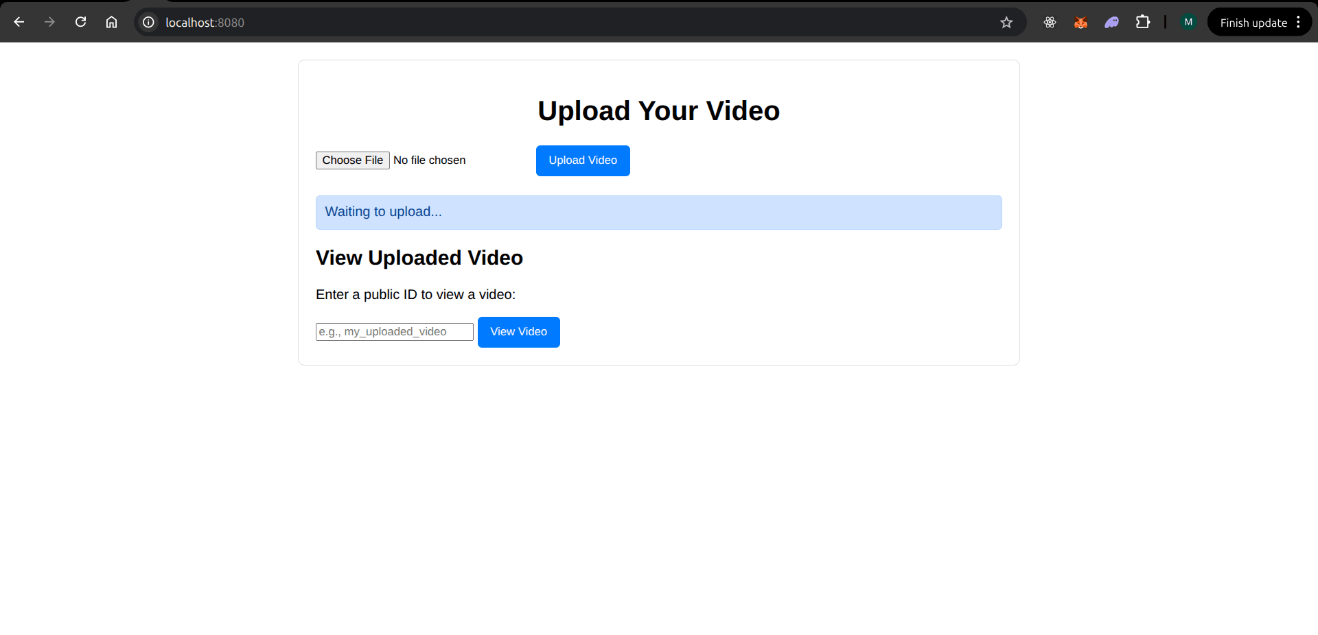 <!DOCTYPE html> <html lang="en"> <head> <meta charset="UTF-8" /> <meta name="viewport" content="width=device-width, initial-scale=1.0" /> <title>Video Streaming In Java</title> <style> body { font-family: Arial, sans-serif; margin: 20px; } .container { max-width: 800px; margin: auto; padding: 20px; border: 1px solid #ddd; border-radius: 8px; } h1 { text-align: center; } form { margin-bottom: 20px; } input[type="file"] { margin-bottom: 10px; } button { padding: 10px 15px; background-color: #007bff; color: white; border: none; border-radius: 5px; cursor: pointer; } button:hover { background-color: #0056b3; } #uploadStatus { margin-top: 15px; padding: 10px; border-radius: 5px; } .success { background-color: #d4edda; color: #155724; border: 1px solid #c3e6cb; } .error { background-color: #f8d7da; color: #721c24; border: 1px solid #f5c6cb; } .info { background-color: #cfe2ff; color: #084298; border: 1px solid #b6d4fe; } a { color: #007bff; text-decoration: none; } a:hover { text-decoration: underline; } </style> </head> <body> <div class="container"> <h1>Upload Your Video</h1> <form id="uploadForm"> <input type="file" id="videoFile" name="file" accept="video/*" required /> <button type="submit">Upload Video</button> </form> <div id="uploadStatus" class="info">Waiting to upload...</div> <h2>View Uploaded Video</h2> <p>Enter a public ID to view a video:</p> <input type="text" id="publicIdInput" placeholder="e.g., my_uploaded_video" /> <button onclick="viewVideo()">View Video</button> <script> document .getElementById("uploadForm") .addEventListener("submit", async function (event) { event.preventDefault(); const fileInput = document.getElementById("videoFile"); const statusDiv = document.getElementById("uploadStatus"); const submitButton = document.getElementById("submitButton").disabled = true; // Disable button during upload if (fileInput.files.length === 0) { statusDiv.className = "error"; statusDiv.textContent = "Please select a file to upload."; return; } const formData = new FormData(); formData.append("file", fileInput.files[0]); statusDiv.className = "info"; statusDiv.textContent = "Uploading... Please wait."; try { const response = await fetch("/videos/upload", { method: "POST", body: formData, }); const text = await response.text(); if (response.ok) { statusDiv.className = "success"; statusDiv.innerHTML = text + '<br>You can now view it using the public ID below or <a href="/player?publicId=' + extractPublicId(text) + '">Click here to play</a>.'; document.getElementById("publicIdInput").value = extractPublicId(text); } else { statusDiv.className = "error"; statusDiv.textContent = "Upload failed: " + text; } } catch (error) { statusDiv.className = "error"; statusDiv.textContent = "An error occurred during upload: " + error.message; } }); function extractPublicId(text) { const match = text.match(/Public ID: ([w/]+)/); return match ? match[1] : ""; } function viewVideo() { const publicId = document.getElementById("publicIdInput").value; if (publicId) { window.location.href = `/player?publicId=${publicId}`; } else { alert("Please enter a Public ID to view the video."); } } </script> </div> </body> </html>