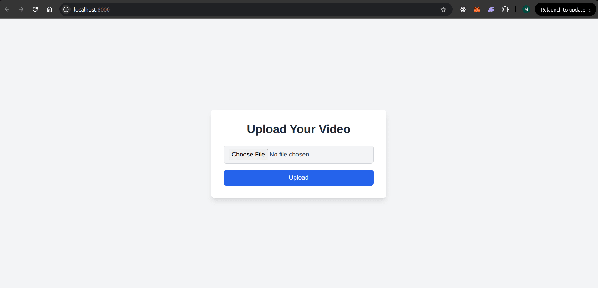Now you can start up the application by running php -S localhost:8000 -c ./php.ini, and navigating to localhost:8000 in your browser and you should see the upload form as shown below: