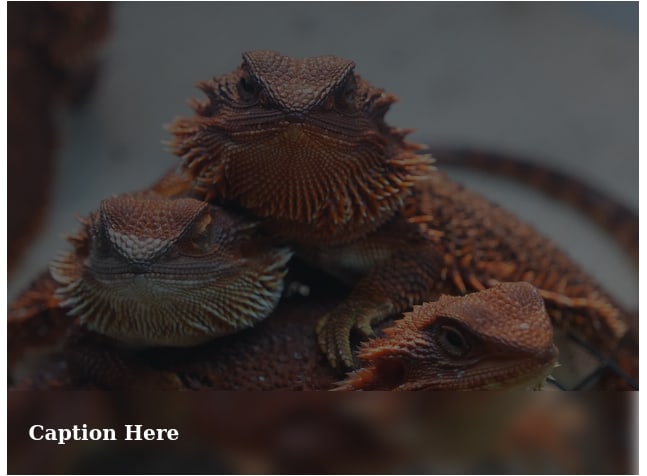 <div class="image-container"> <img src="https://cdn.pixabay.com/photo/2025/09/08/04/00/bearded-dragon-9821324_1280.jpg" alt="A descriptive alt text"> <div class="image-text">Caption Here</div> </div>