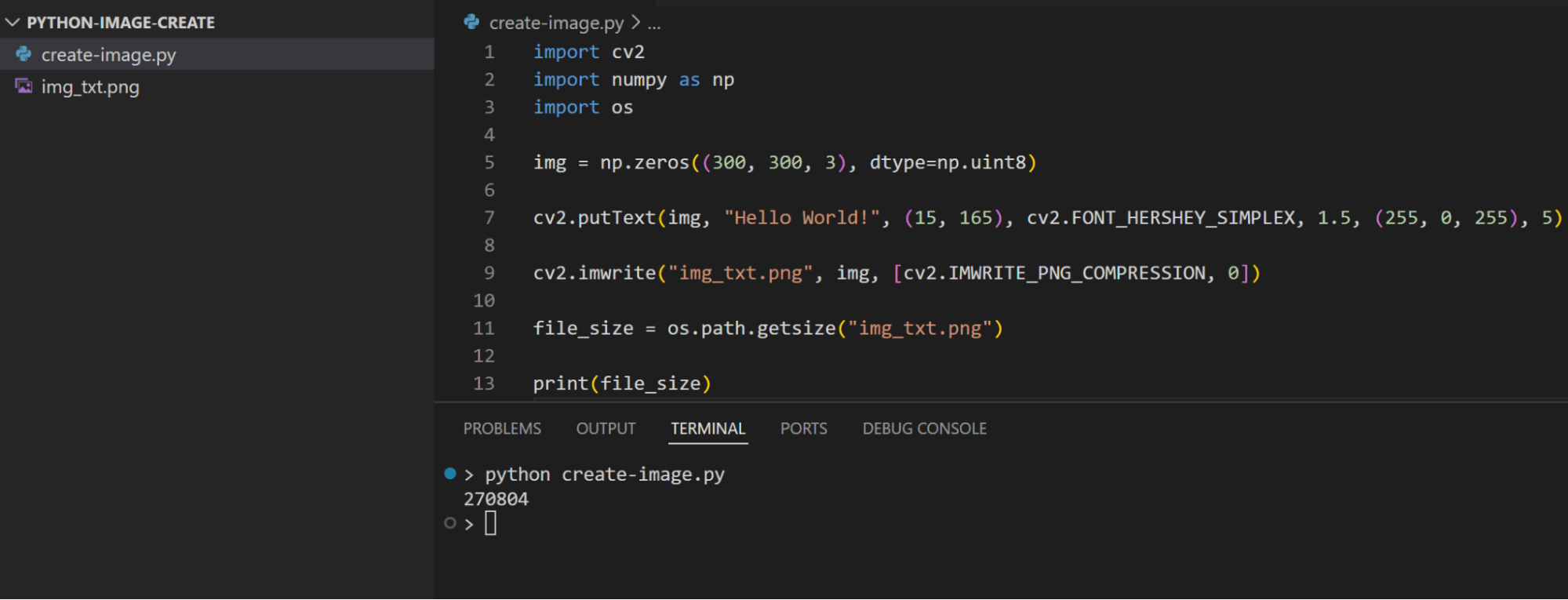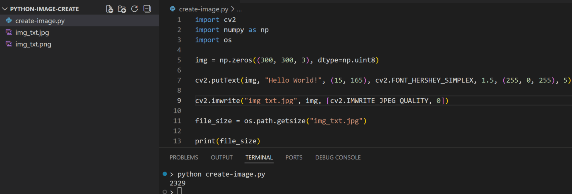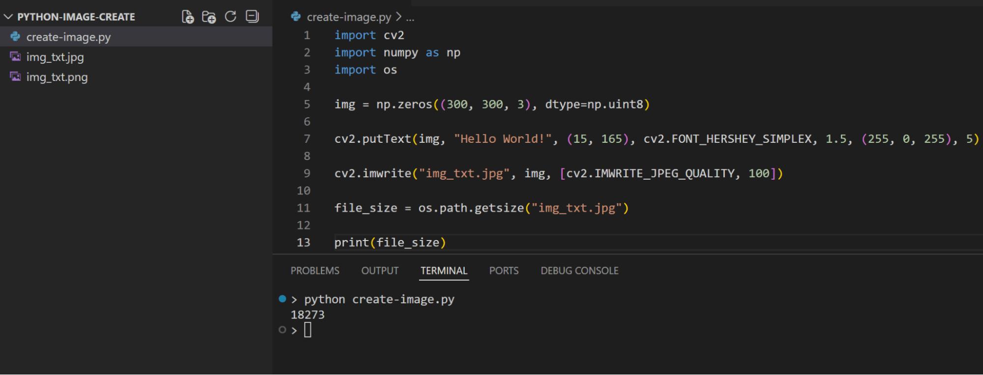 After creating an image and manipulating it as needed, we can save it as a file with a specific format and compression/quality level. OpenCV also provides a method called cv2.imwrite() that enables us to easily do this.