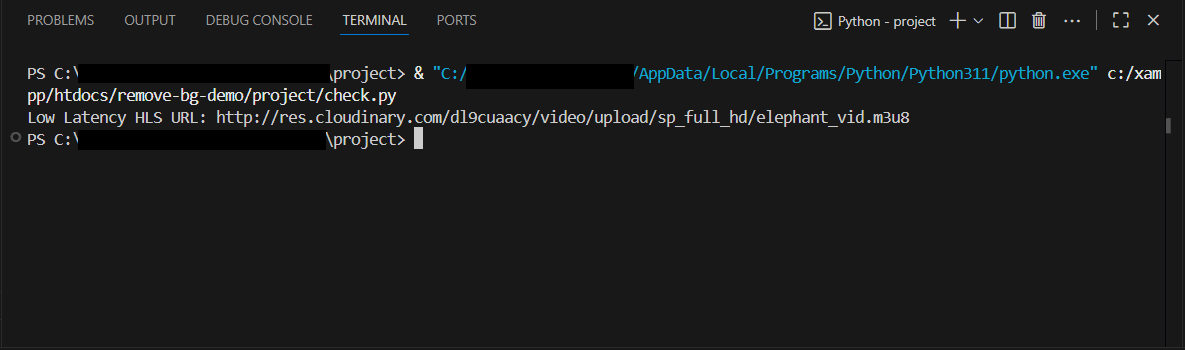 Next, install the Cloudinary Python SDK using the pip install cloudinary command. Then, we will configure the SDK with our credentials in our Python script: