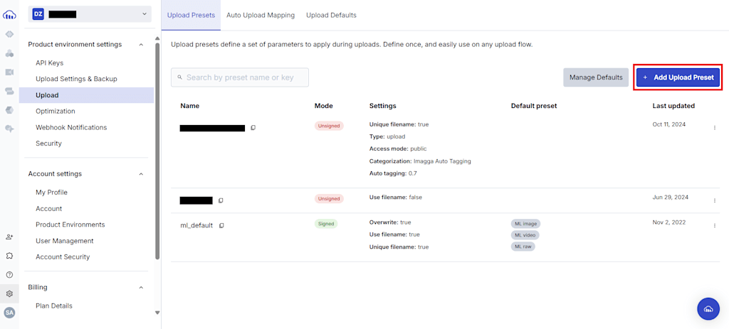 Once logged in, head over to the Settings and navigate to the Upload tab. Here, click on the + Add Upload Preset button to create a new upload preset. Make sure to set the Signing mode to unsigned. Once complete, copy the name of your preset as well as your cloud name, as we will need it later.