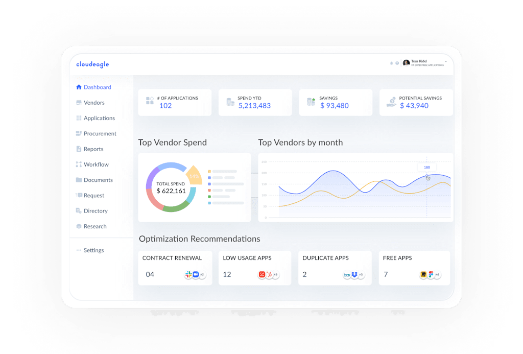 CloudEagle.ai is an AI-powered platform that helps IT, Security, and Procurement teams manage, govern, and optimize SaaS apps in one place. With 500+ direct integrations and Slack-enabled workflows, teams can automate onboarding, offboarding, license management, access reviews, and procurement—all while saving up to 30% on software spend and gaining 100% SaaS visibility.