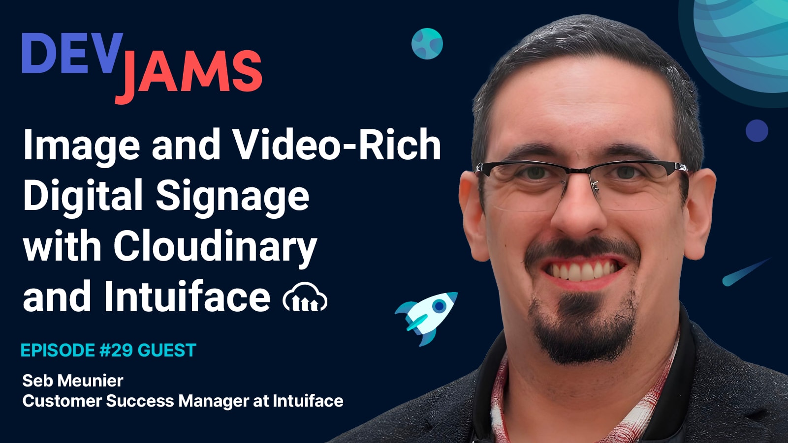 In this episode of Cloudinary DevJams, we host Seb Meunier – Customer Success Manager at Intuiface! He will share how their interactive signage platform uses Cloudinary to deliver images and videos across various projects, thanks to a .NET plugin he developed. Further demonstrating how the platforms interlink, Seb will walk through how their system can use many other well-known platforms. This includes Airtable and OpenAI’s DALL-E for AI image generation, in conjunction with Cloudinary. Seb plans to show these integrations through various operations, such as dictating prompts, uploading images to Cloudinary, and displaying the images on large screens. This episode shows how you can use Cloudinary as a single source of truth for all your digital projects, including signage for shared spaces such as museums and galleries. So, check it out and see how it is possible, thanks to the great work Seb has done for Intuiface!