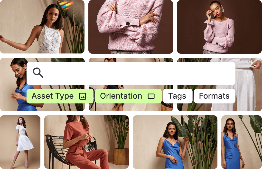 Developers, marketers, and e-commerce teams quickly find ideal assets using natural language search prompts.