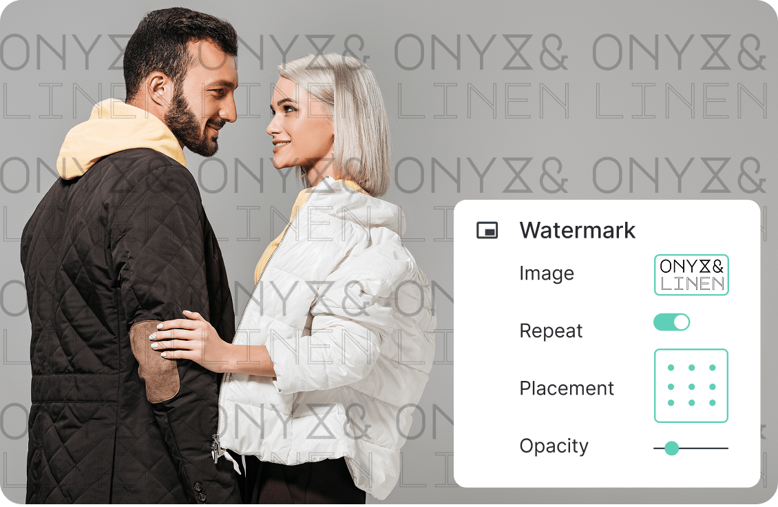 Automatically apply watermarks at upload or on the fly at delivery of both images and videos. Make hyper-specific adjustments to the transparency, positioning, and tile of watermarks across the entire asset. Prevent unwanted watermark tampering or removal with added effects and protections.