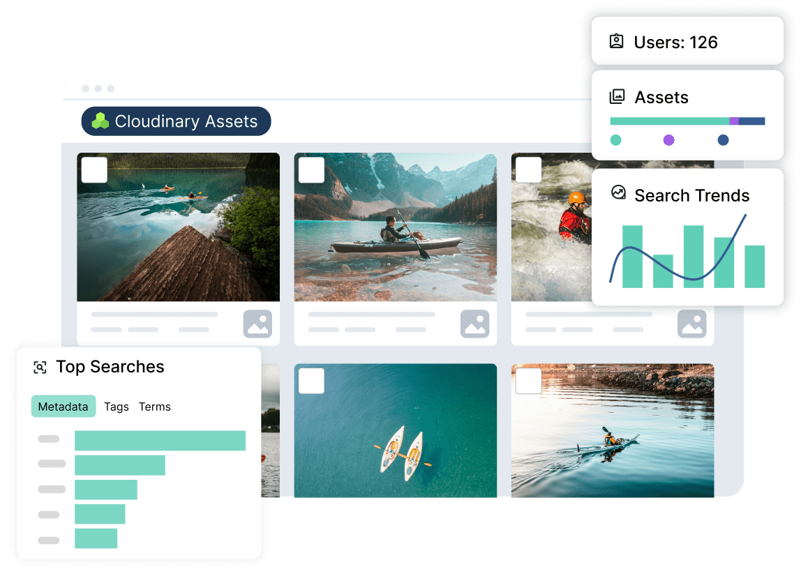 Data-driven decisions start with clear, easy-to-read data. Cloudinary Assets analytics and reporting dashboards show top downloads, most active users, and trending usage so you can see how content performs.